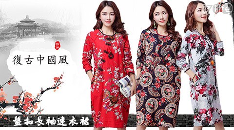 商品訊息簡述: 平均最低只要397元起(含運)即可享有復古中國風盤扣長袖連衣裙:1件/2件/4件,多色多尺寸!